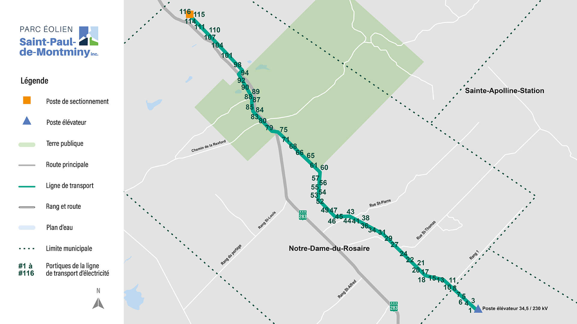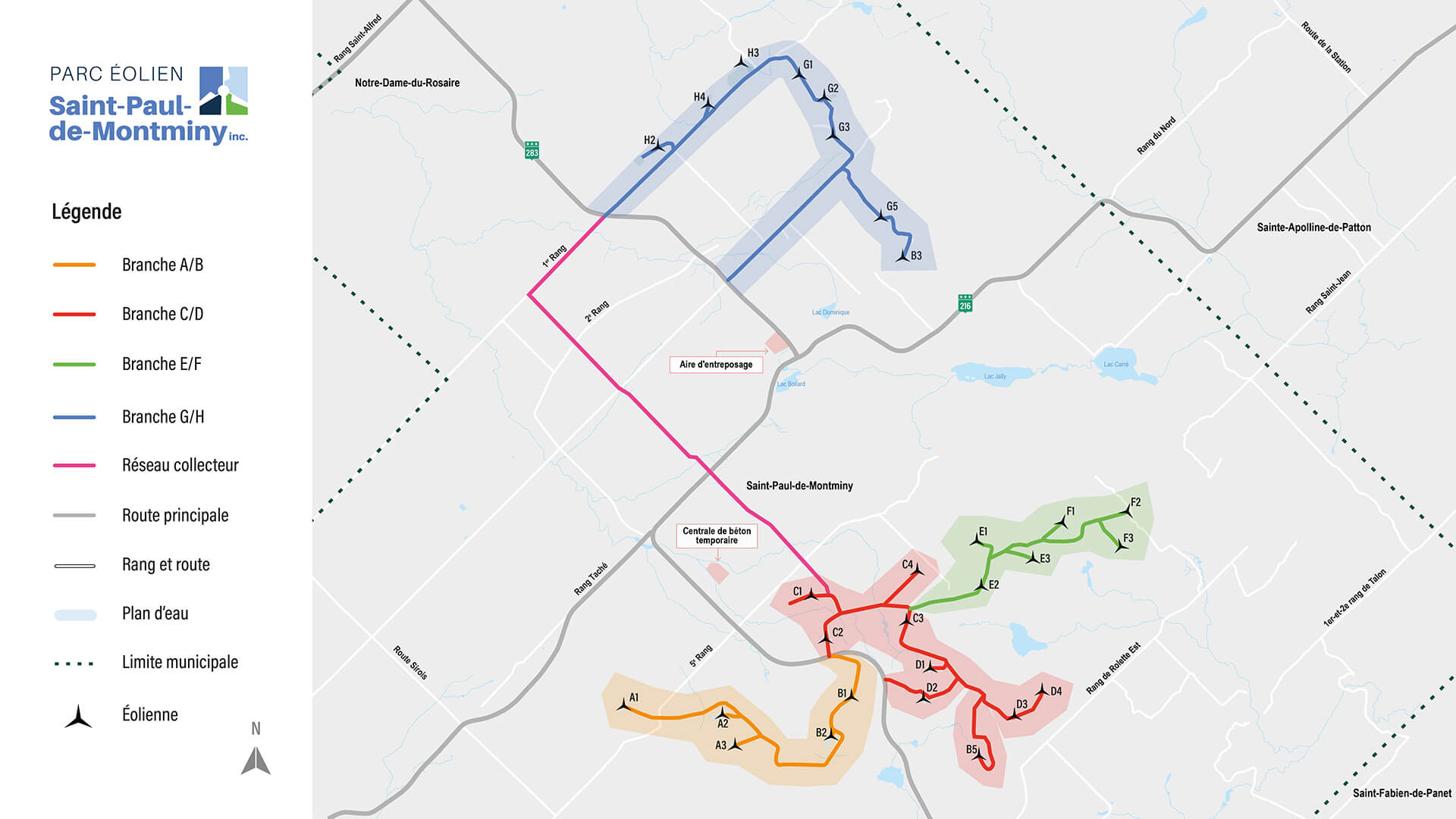 Vous trouverez ci-dessous un aperçu des activités de construction prévues pour les deux prochaines semaines pour les municipalités de Saint-Paul-de-Montminy, Notre-Dame-du-Rosaire et Sainte-Appoline-de-Potton. Les numéros d’éoliennes et le positionnement des infrastructures apparaissent sur les cartes du projet ci-dessous.